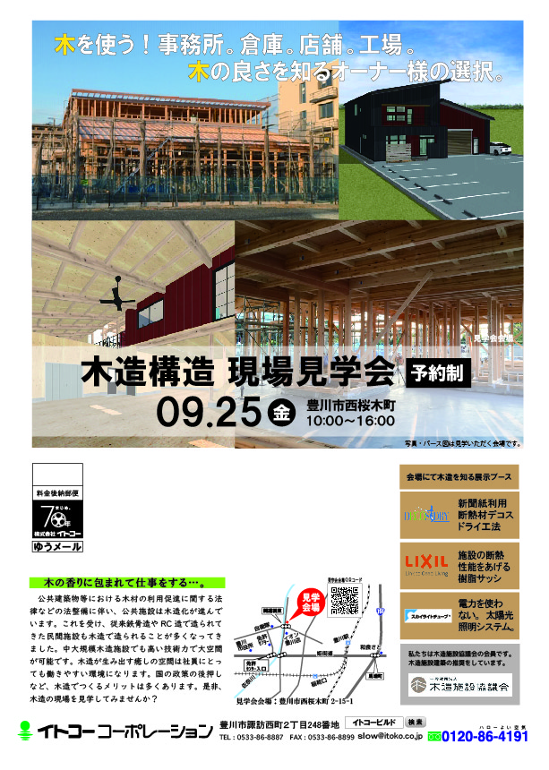 豊川市西桜木町にて 木造でつくる構造 現場見学会を開催致します。