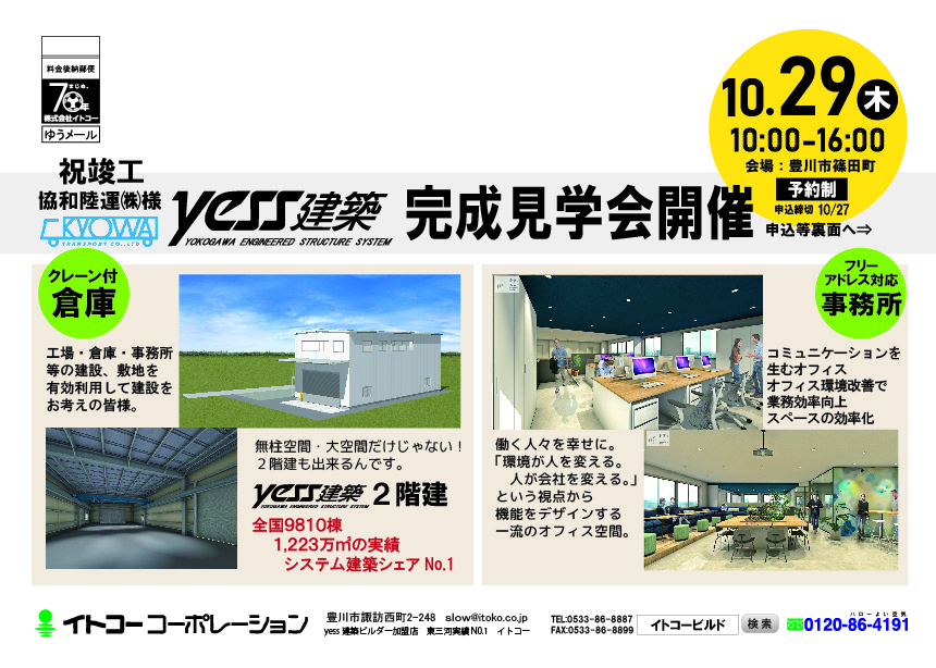 10/29(木)協和陸運㈱様 yess建築完成見学会ダイレクトメールを発送させていただきました。