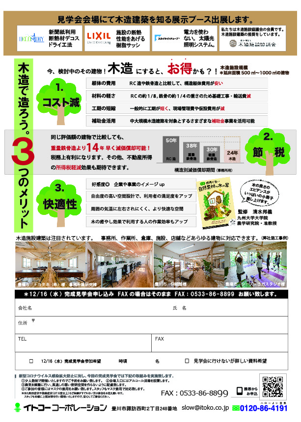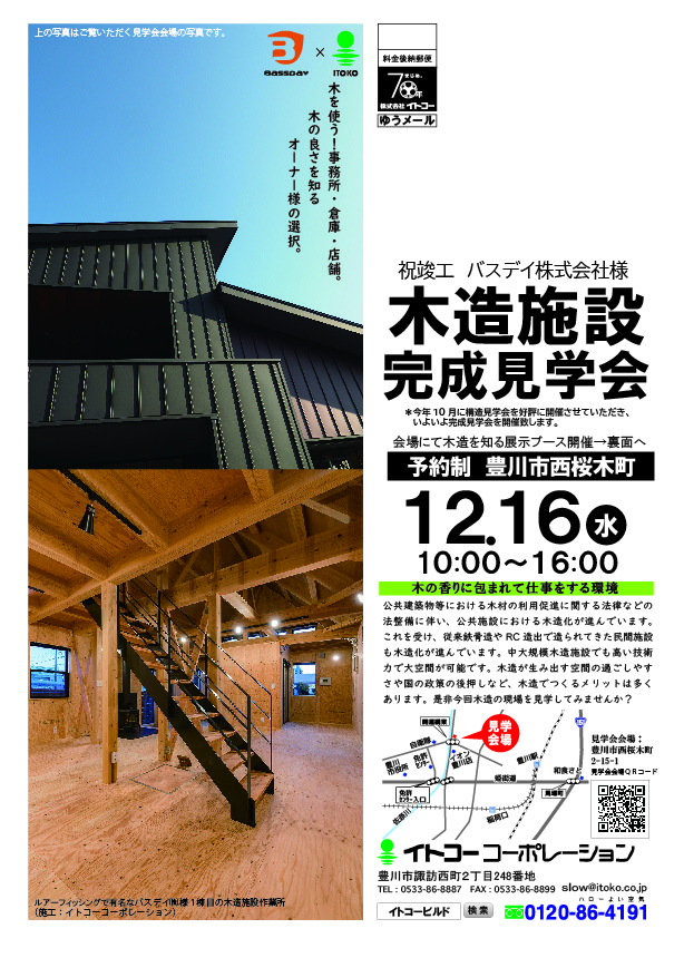 12/16(水)バスデイ(株)様 木造施設建築完成見学会ダイレクトメールを発送させていただきました。