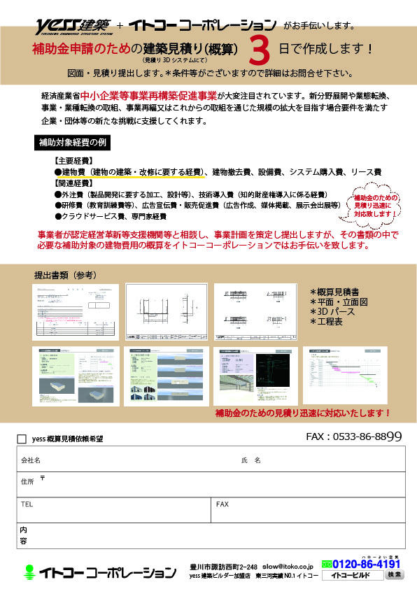 補助金申請のための建築見積り(概算)3日で作成します!図面・見積り提出します。