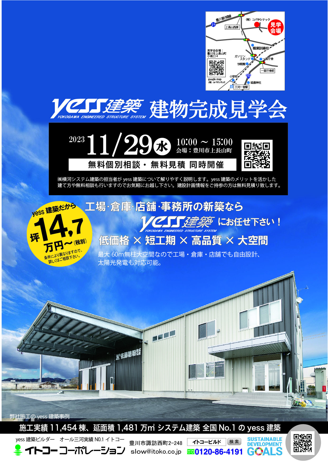 11/29(水)豊川市上長山町にて yess建築完成見学会を開催します。