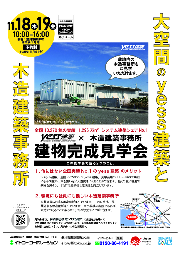 11月18日(木)19日(金) 豊川市御津町御幸浜一号地内にて yess建築 完成見学会を開催します。