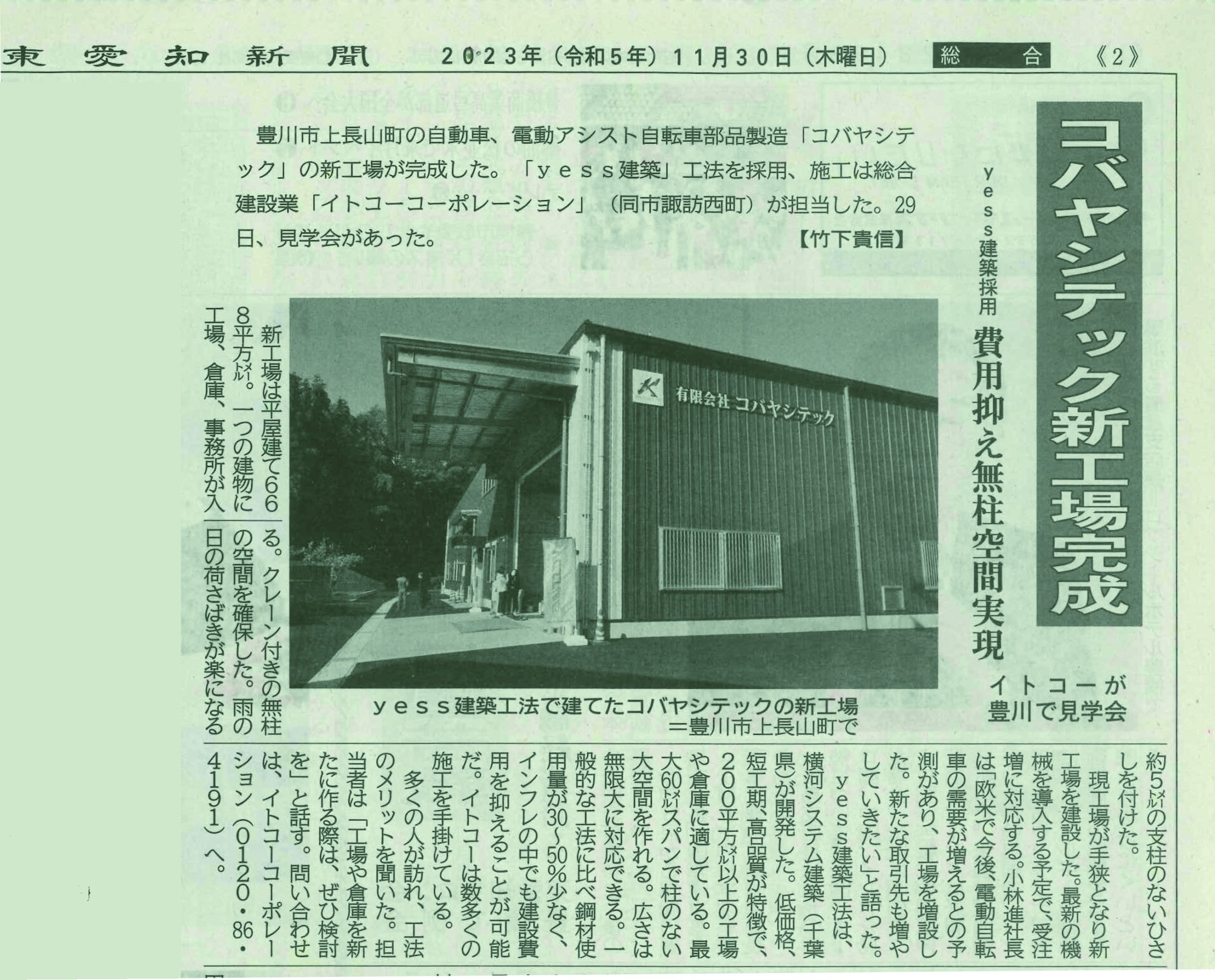 見学会の様子が新聞掲載されました(東愛知新聞11/30掲載・東日新聞12/1掲載)