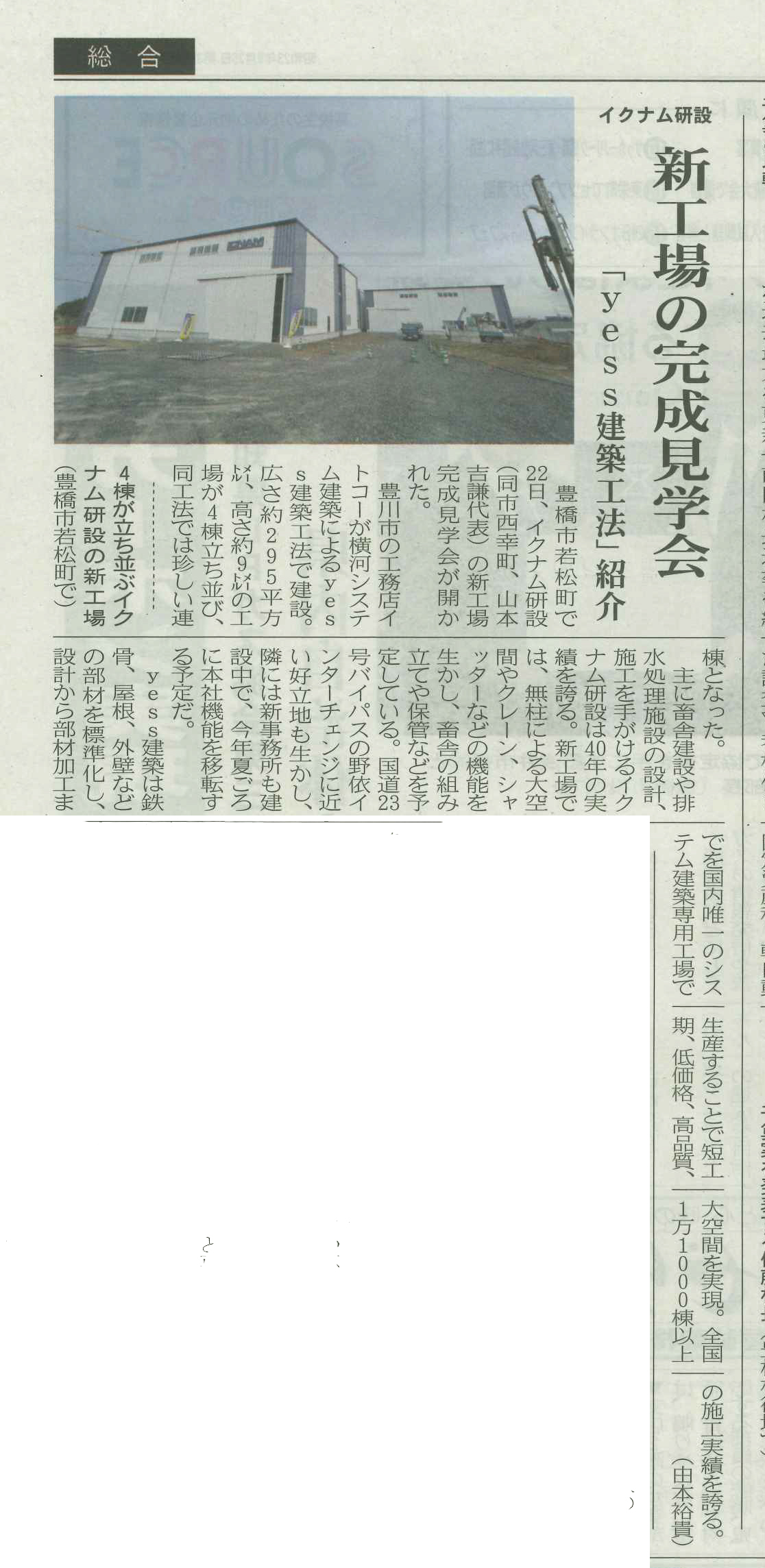 見学会当日の様子が新聞に掲載されました。