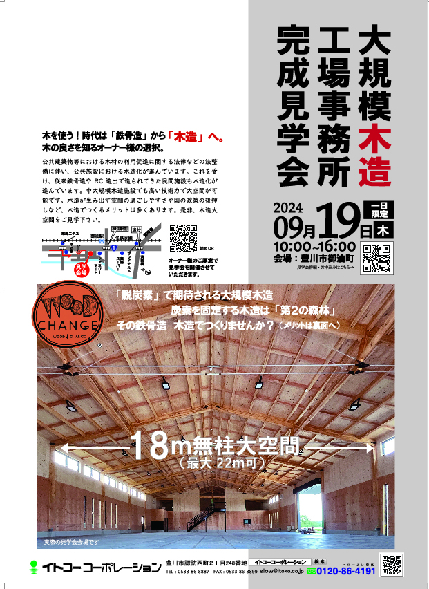 豊川市に大規模木造工場・事務所が完成しました。