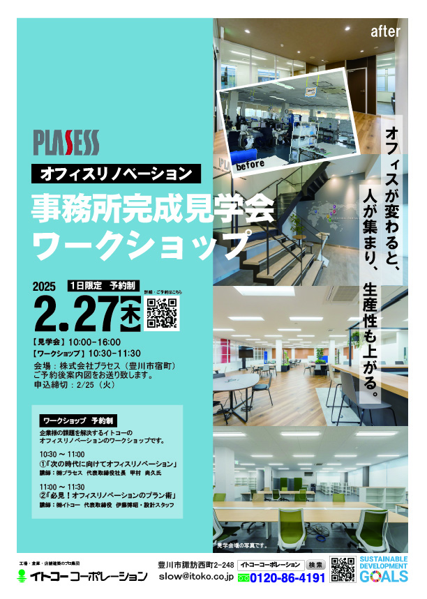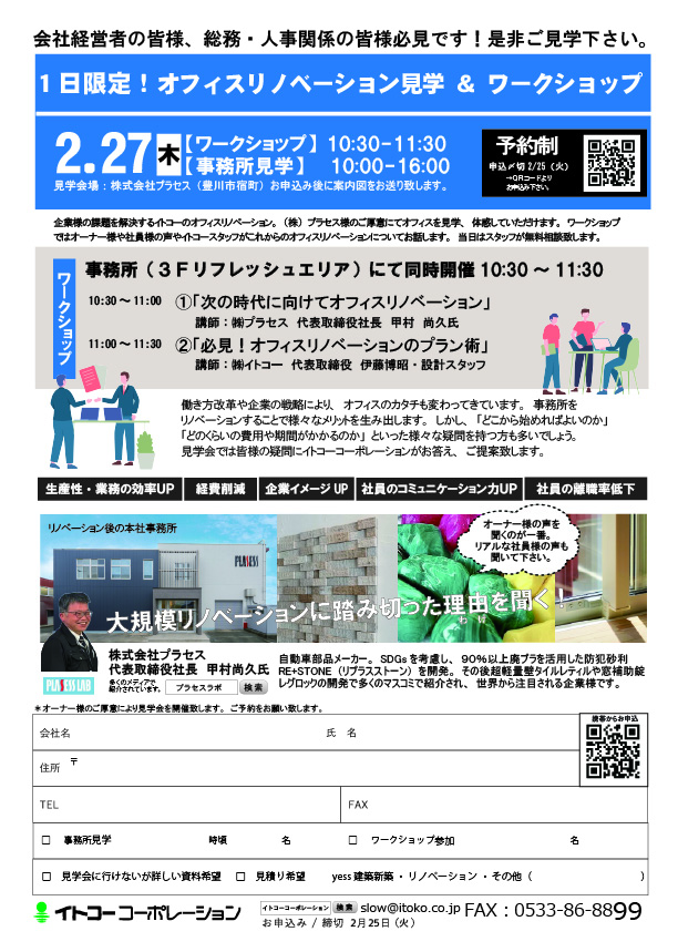オフィスリノベーション 事務所完成見学会&ワークショップ 案内が完成しました。