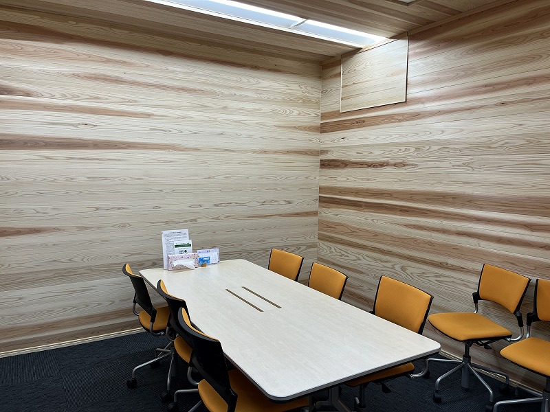 また、2部屋の応接室には壁天井に地元のスギ材を貼り、木質化をされました。