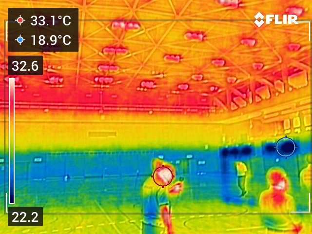 下記写真を見て解るように、大空間の部分空調(成層空調)が可能なことが実感できました。
