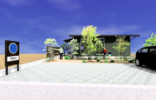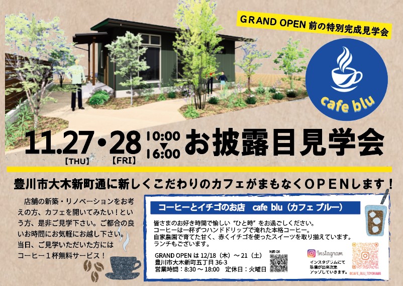 現在、豊川市大木新町通りにてcafe blu(カフェ ブルー)様建築中です。