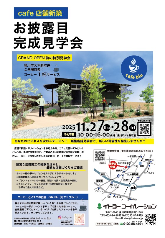 豊川市にてcafe店舗新築 お披露目完成見学会を開催します!