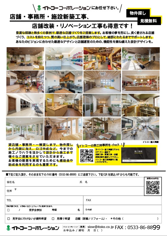 イトコーコーポレーションでは豊富な店舗施工の経験を活かし、最適な店舗づくりをご提案します。