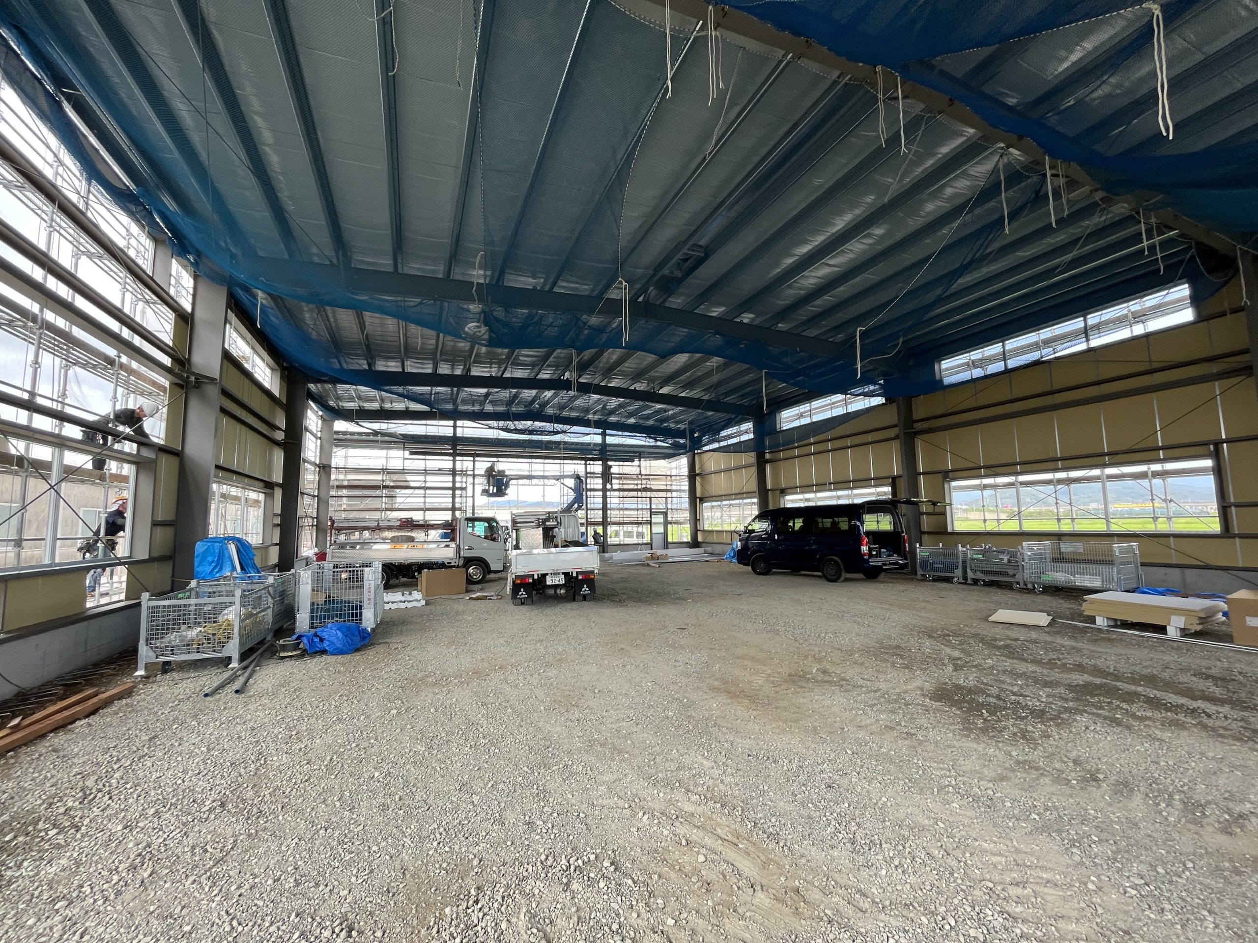 土間コンクリート工事も終了し、内部は仕上げにむけて工事が進みます。
