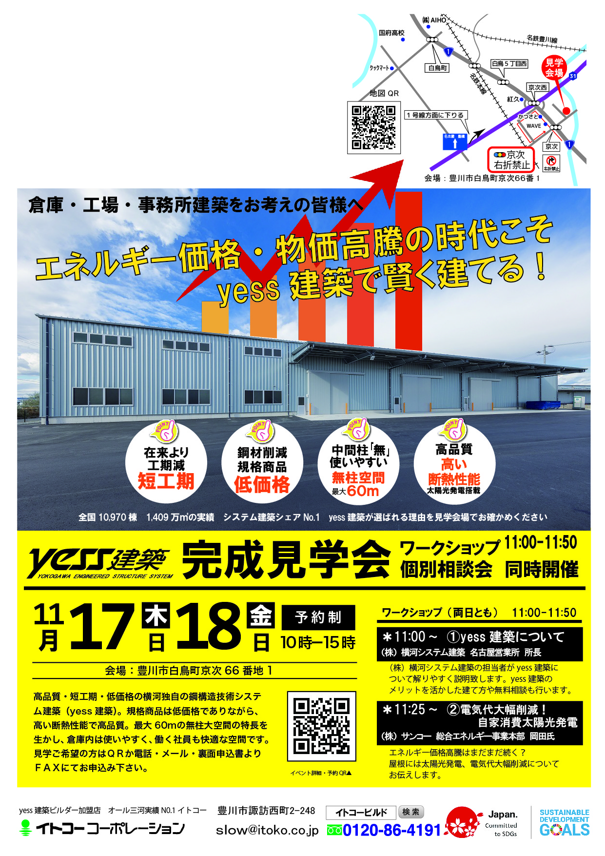 11月17日(木)18日(金) 豊川市白鳥町(国道1号線側)にて完成見学会を開催します。